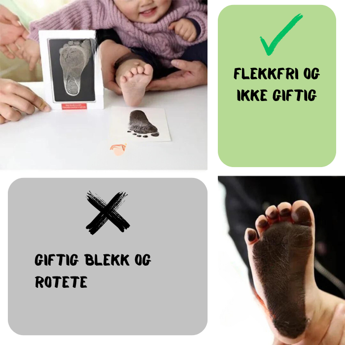 Dette gir et trygt, enkelt og rent alternativ for å fange de uvurderlige minnene av barnets små hender og føtter.